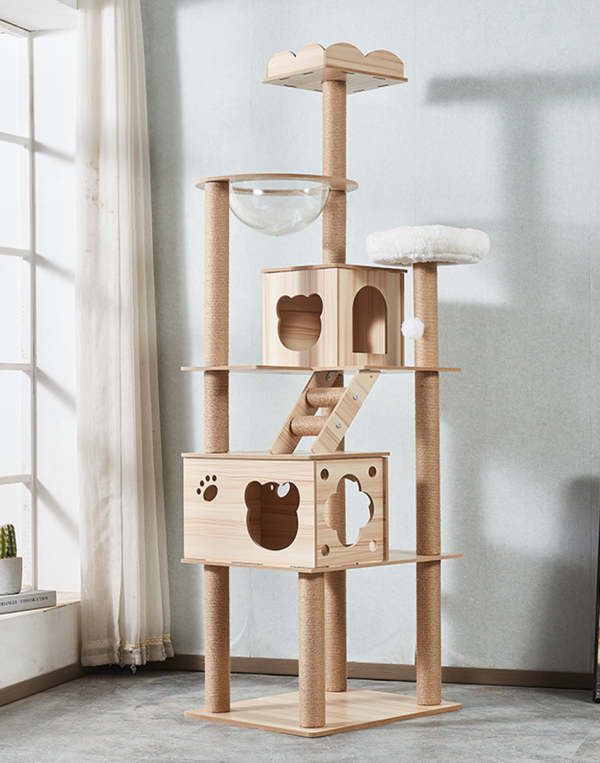 6단 고양이 원목 스크래처 대형캣타워 캣타워 투명해먹